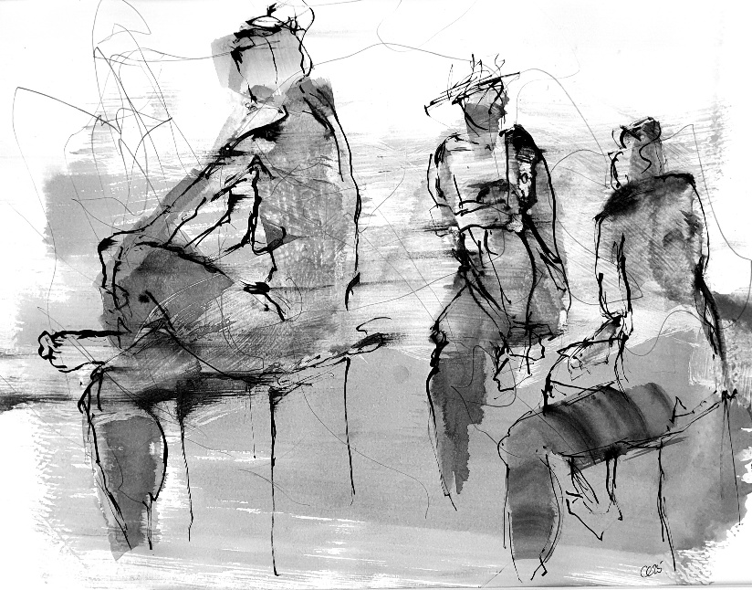 Mir gefällt ganz besonders diese direkte und spontane Form mit Linien Figuren darzustellen die Geschichten erzählen. Die Linie ist so ehrlich und ständig in Bewegung. Sie zeigt sich als feines zartes und dann als bestimmtes kraftvolles Gestaltungselement.